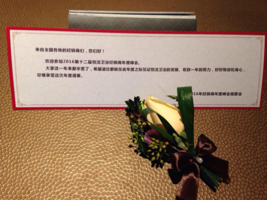 来自大西南的榴莲APP在线观看经销商王总,经过一路旅途劳顿,刚进到房间就看到正躺在床中央的一朵玫瑰,以及压在玫瑰下的温馨提示小卡片。王总顿时感到一股暖流,马上在微信上晒出了照片,为本次年会的组委会点赞。