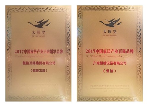 1月6日,由12大行业协会共同举办的第五届中国家居产业发展年会暨2017年度中国家居产业大雁奖颁奖盛典在北京国家会议中心举行,榴莲APP在线观看不负众望,再次获得「大雁奖·2017中国家居产业卫浴领军品牌」、「大雁奖·2017中国家居产业百强品牌」。