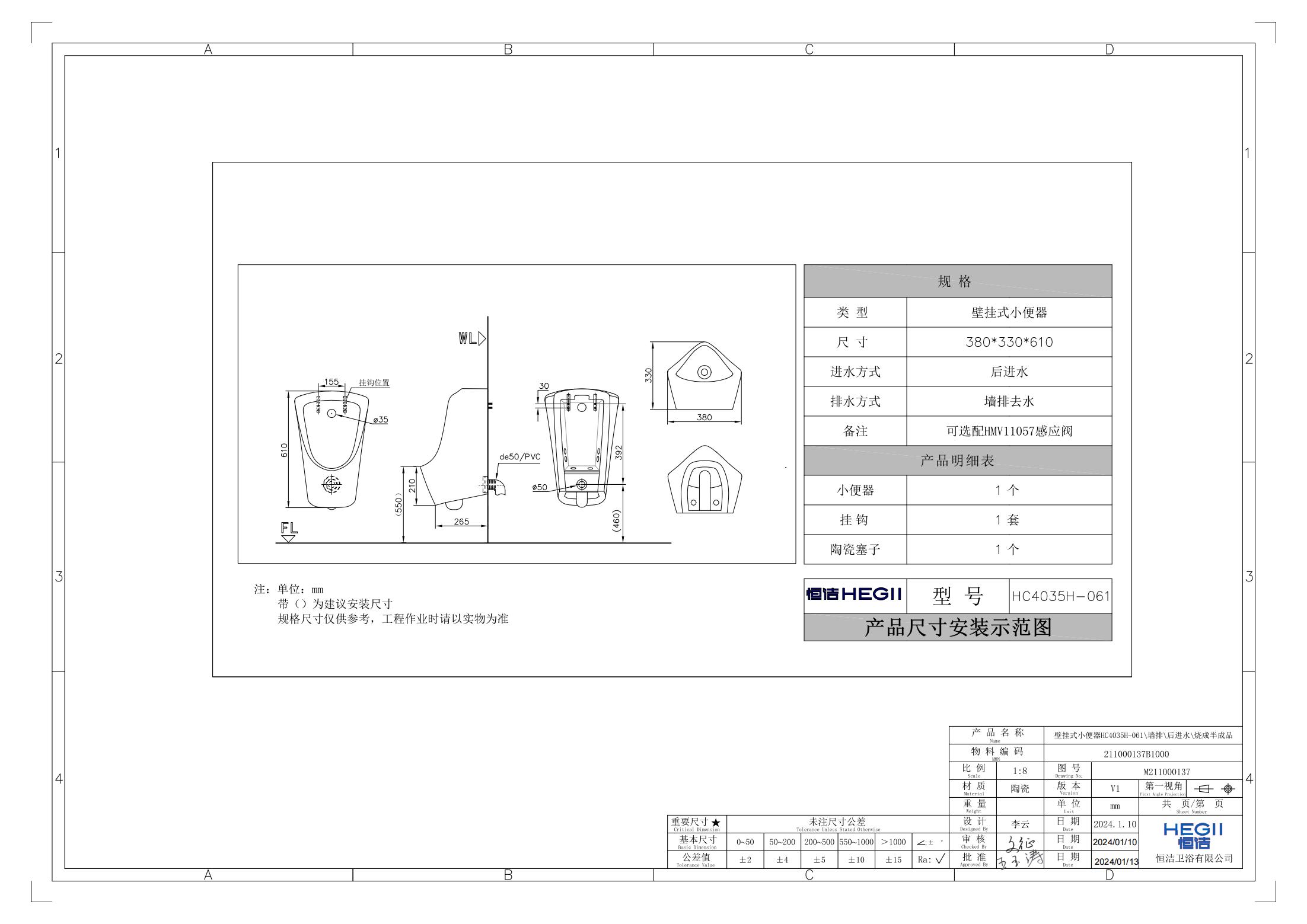 类型:壁挂式小便器